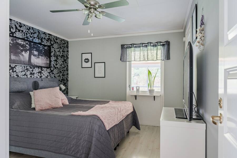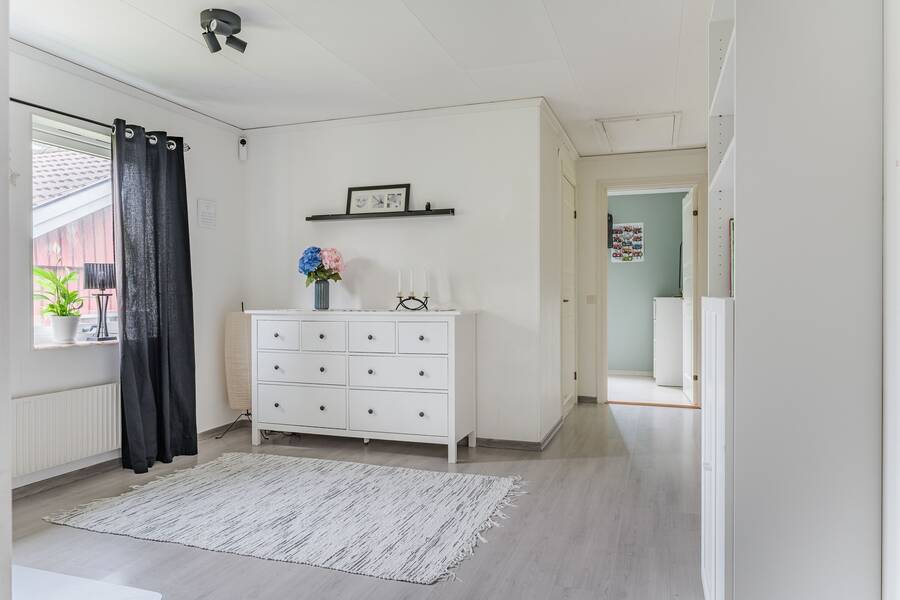 Sovrum 1 har klädkammare, garderober och laminatgolv. Utgång till altanen.