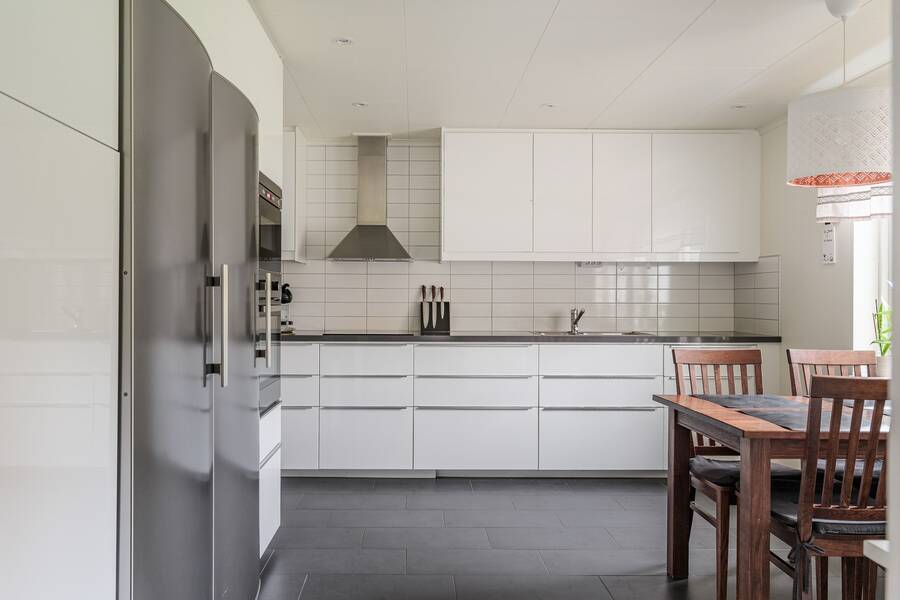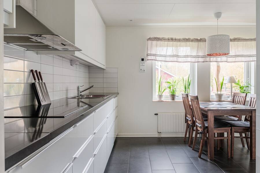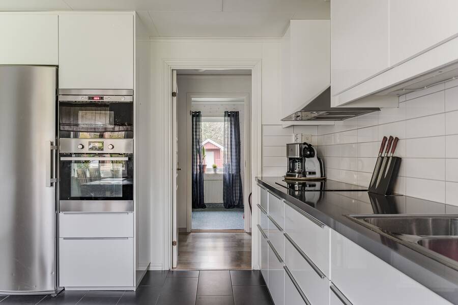 Köket helrenoverades 2014 då samtliga vitvaror också byttes ut. Utrustat med kyl, frys. häll, ugn. mikro, diskmaskin och fläkt. Klinker med golvvärme.