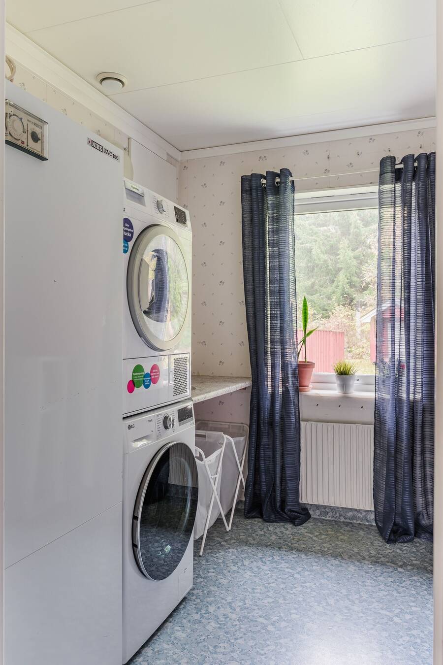 Tvättstuga/groventré med plastmatta. Utrustat med tvättmaskin (2023), torktumlare, värmepanna och tvättho.
