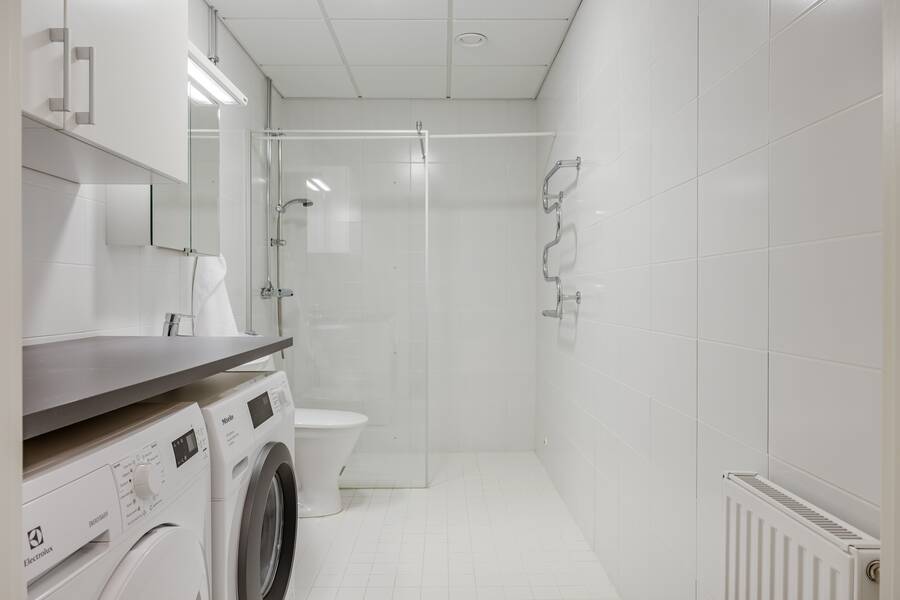 Trivsamt fullutrustat kök. Badrum med kakel/klinker (golvvärme) och utrustad med både tvättmaskin och torktumlare.
