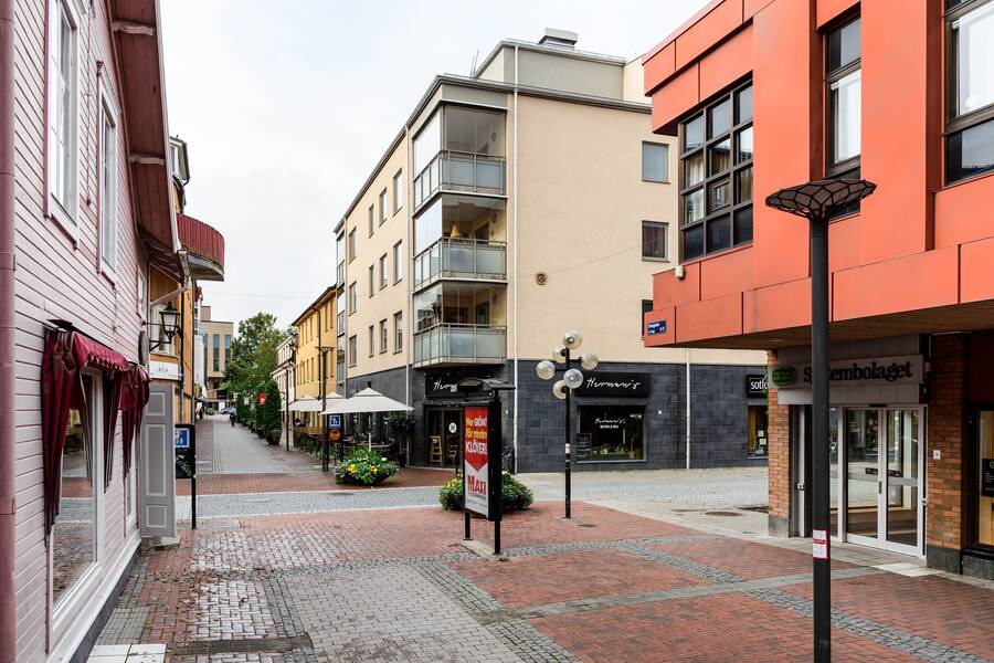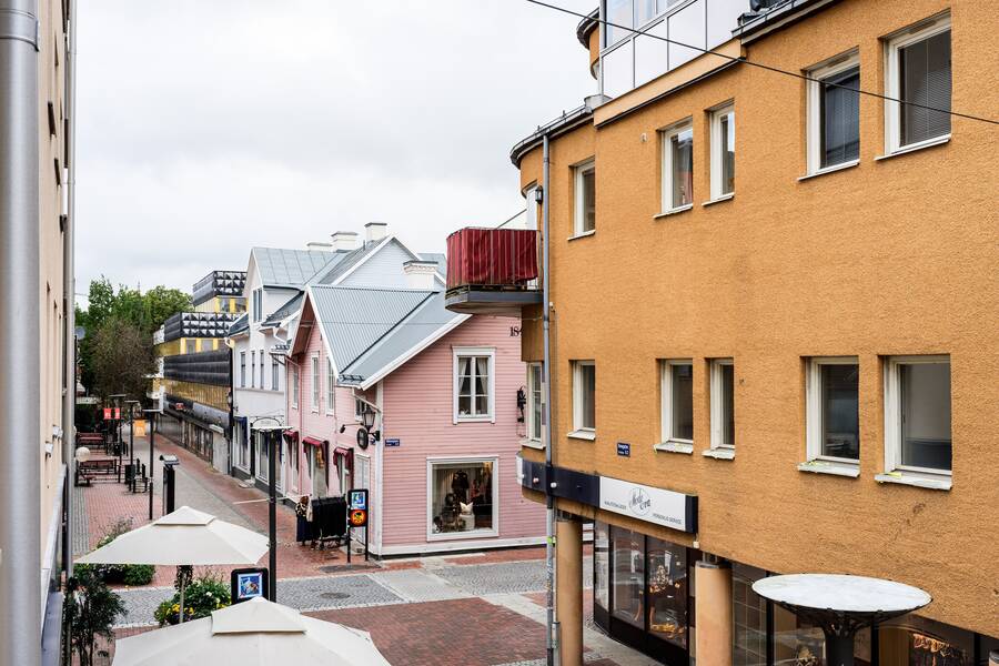 Här erbjuds en modern, fräsch och mycket tilltalande lägenhet mitt i centrum. Öppen planlösning mellan kök och vardagsrum och generösa ytor.