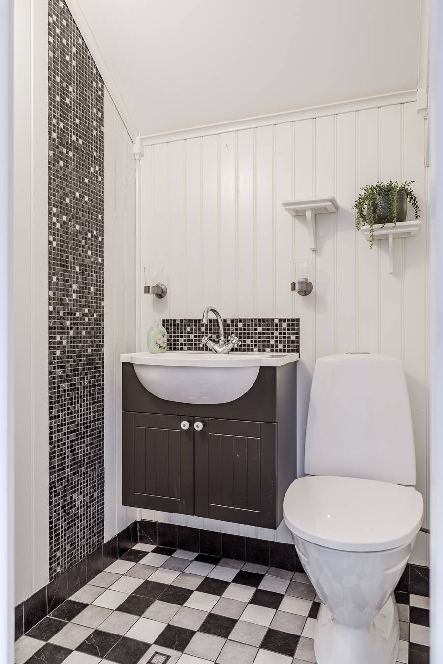 Wcrum med klinker. Utrustat med kommod och wc.