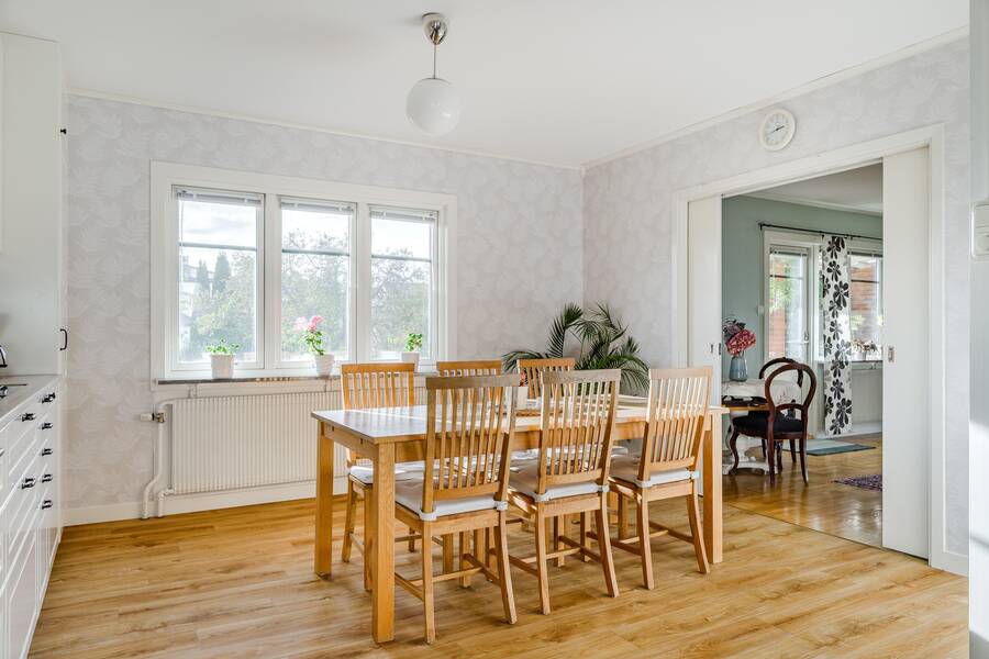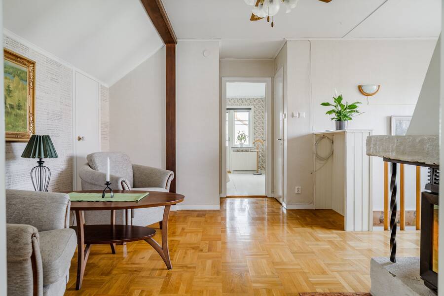 Bostaden erbjuder ett stort härligt kök som helrenoverades 2023 och dessutom har en vedspis. Rymligt vardagsrum. Tre sovrum och två badrum.