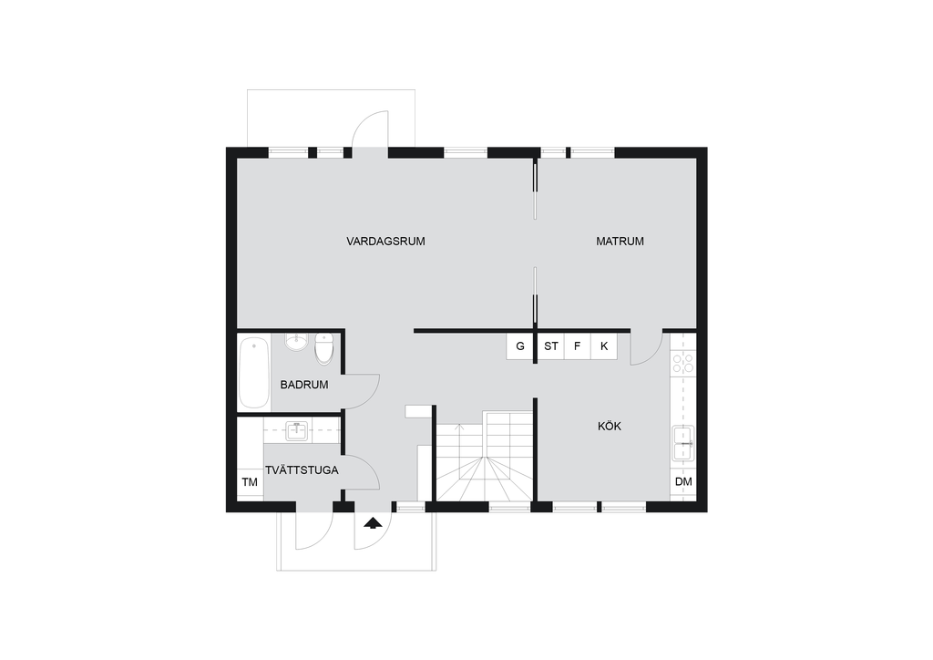 TVÄTTSTUGA: I tvättstugan finns tvättmaskin och tvättbänk. Våtrumsmatta på golv och plasttapet på väggar.