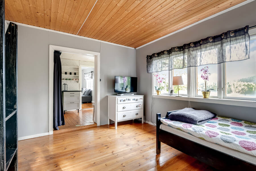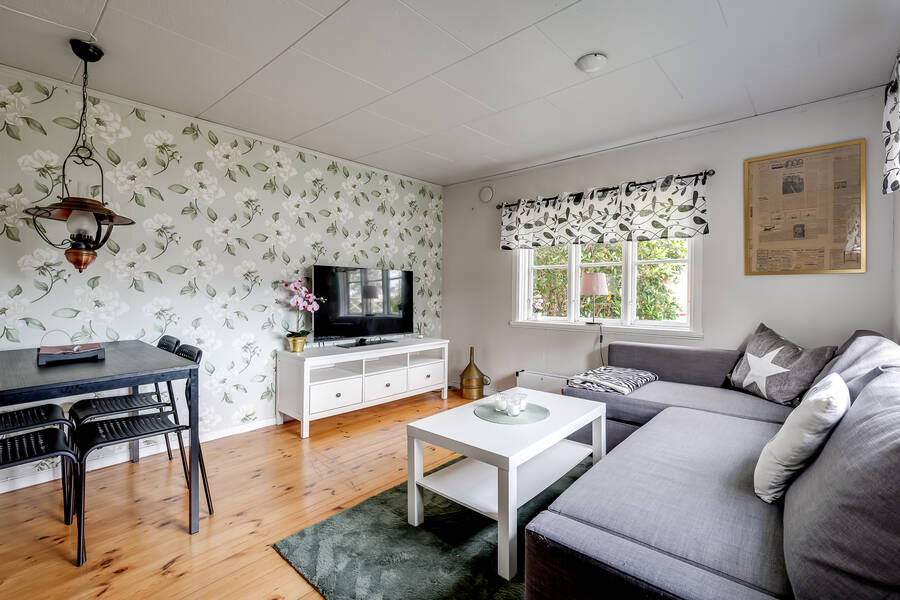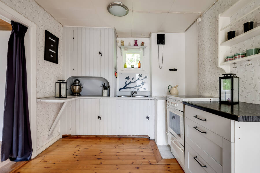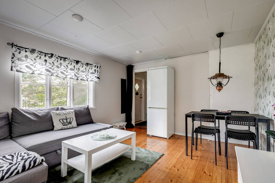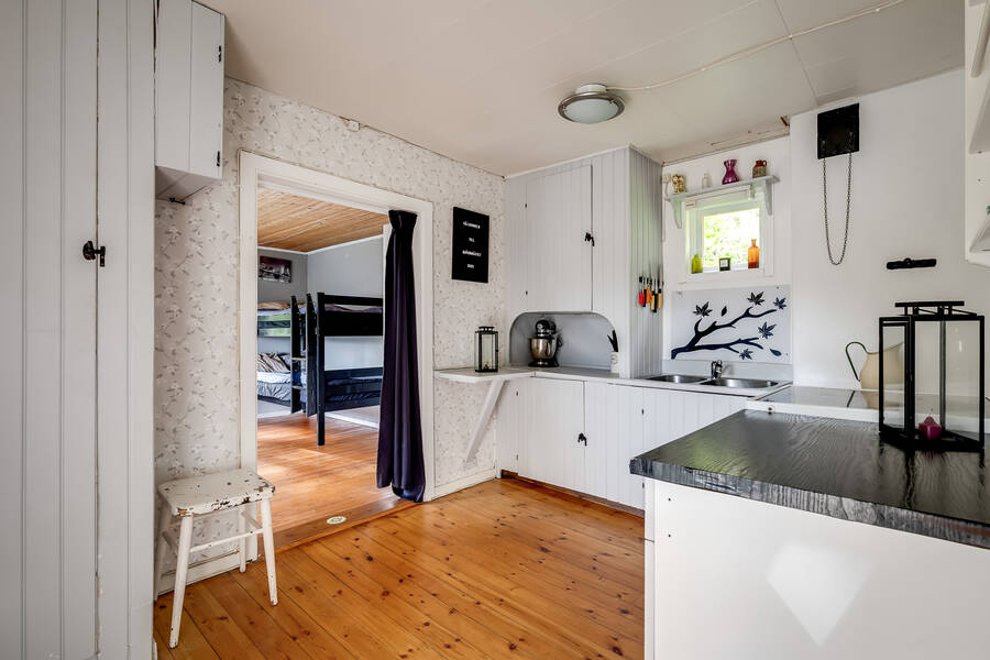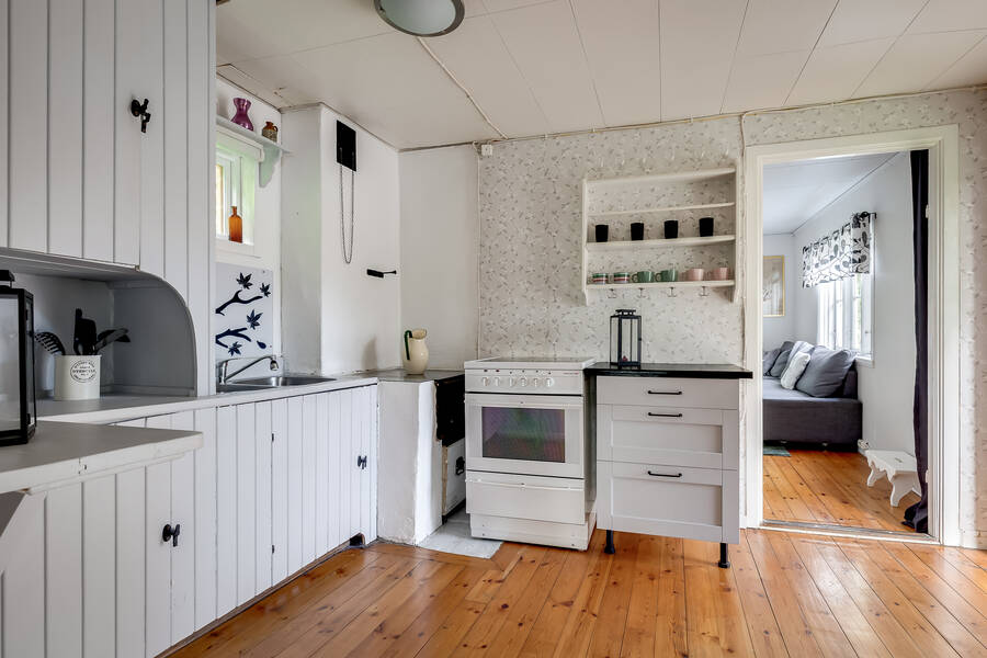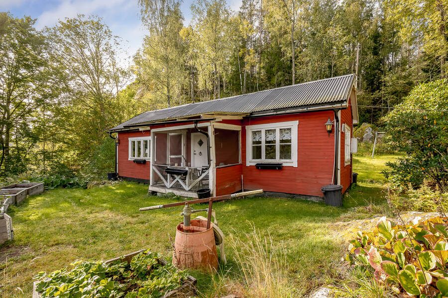 Huset är en mindre, äldre stuga som rymmer sovrum, allrum och kök – enkelt men en perfekt retreat nära stan. Här finns alla förutsättningar för lugna helger, sommarens lata dagar eller en bas att utgå ifrån medan du planerar nästa steg för fastigheten. Vatten och avlopp är ännu inte indraget, men anslutningsavgifterna är redan betalda vilket ger goda möjligheter att koppla in kommunalt vatten och avlopp till huset.