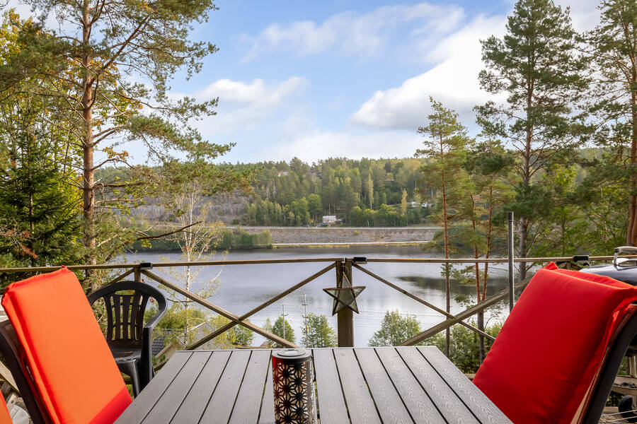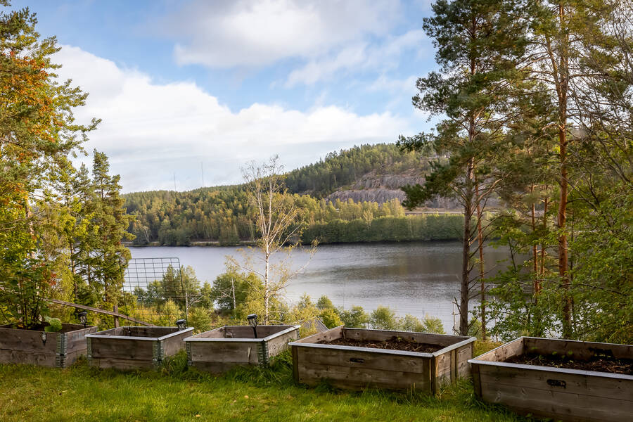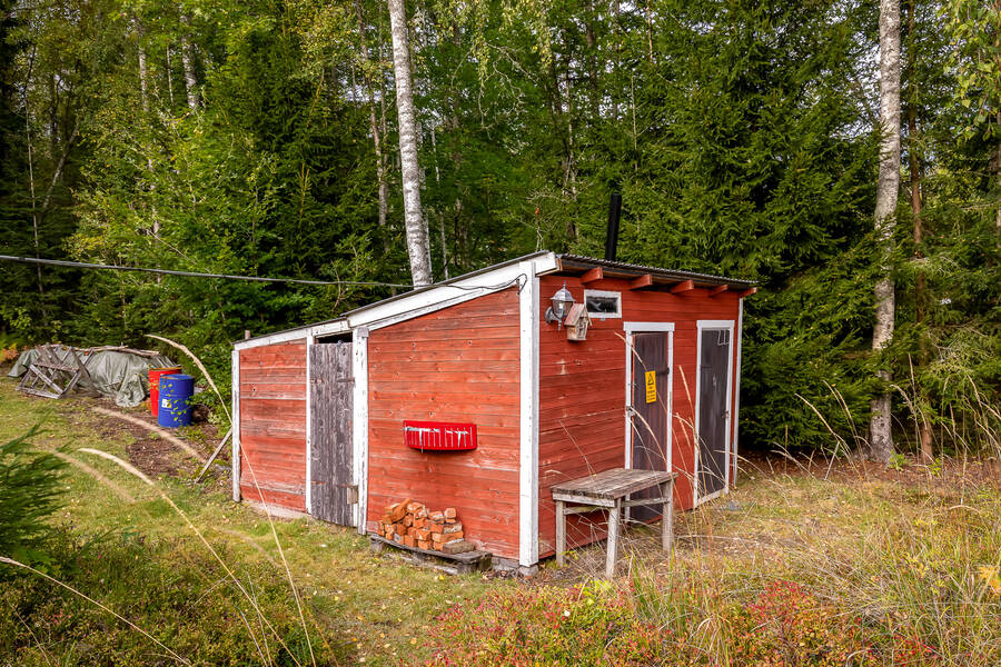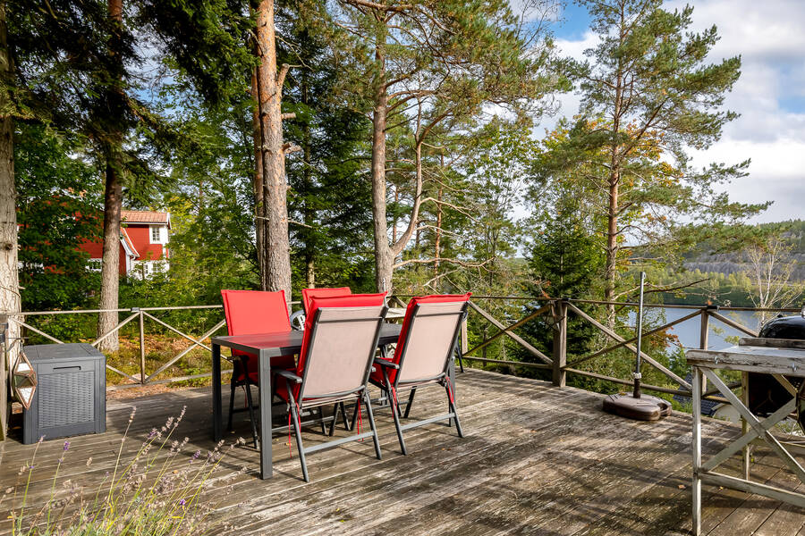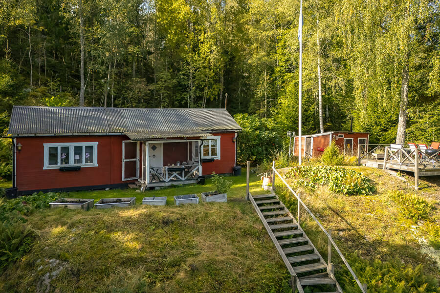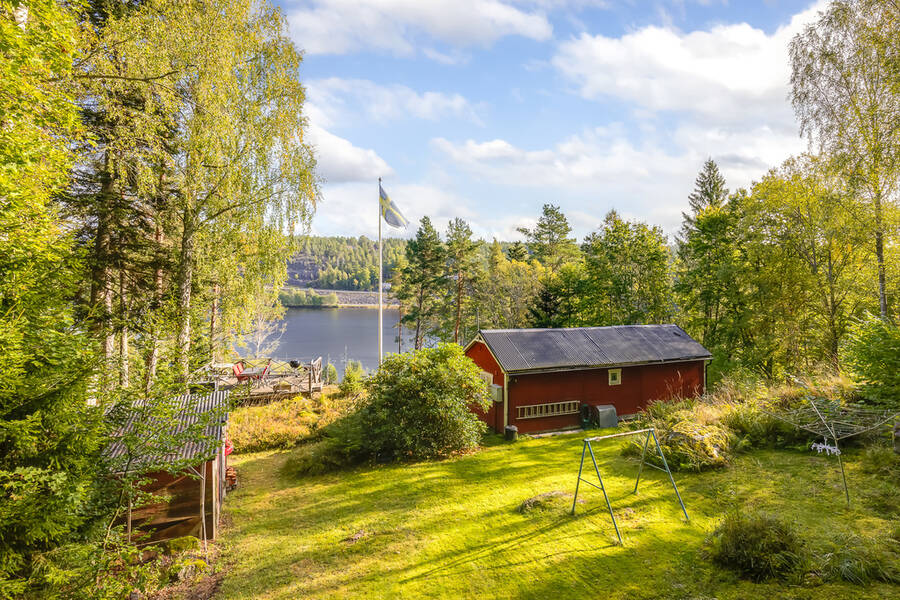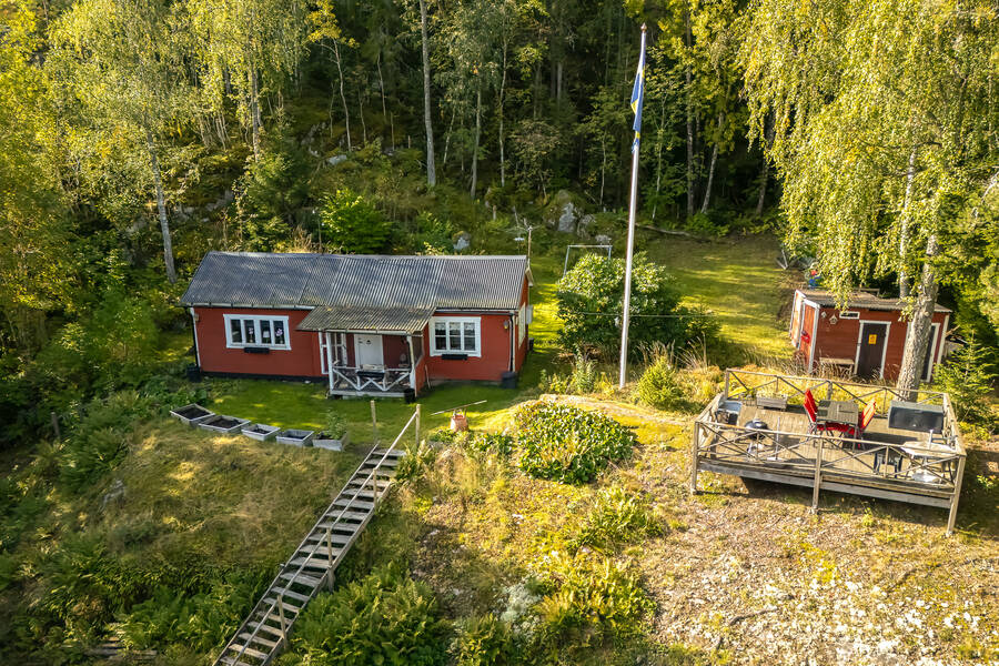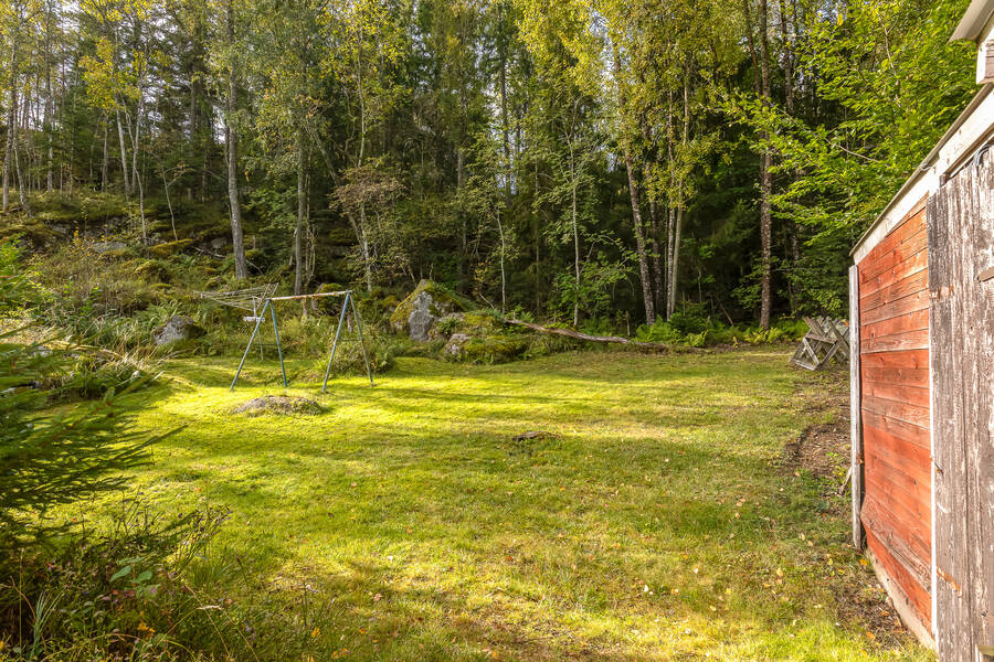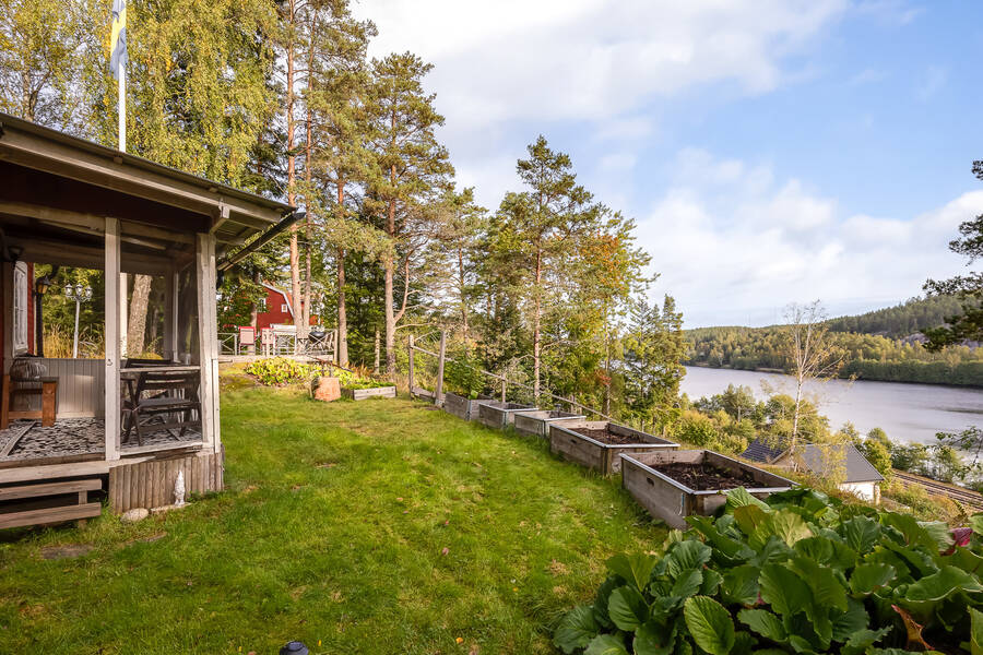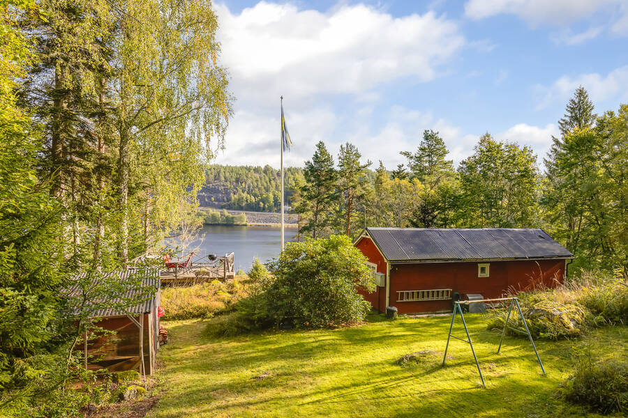 Tomten är lummig och trevlig med flera fina uteplatser som tar vara på läget och sjöutsikten. Den stora trallbelagda altanen erbjuder plats för både grill, matplats och loungegrupp, allt med ständig vy över glittrande vatten och grönskande omgivning. På tomten finns även ett dass och en praktisk verkstadsbyggnad som ger extra förvaring och utrymme för hobby eller renoveringsprojekt.
