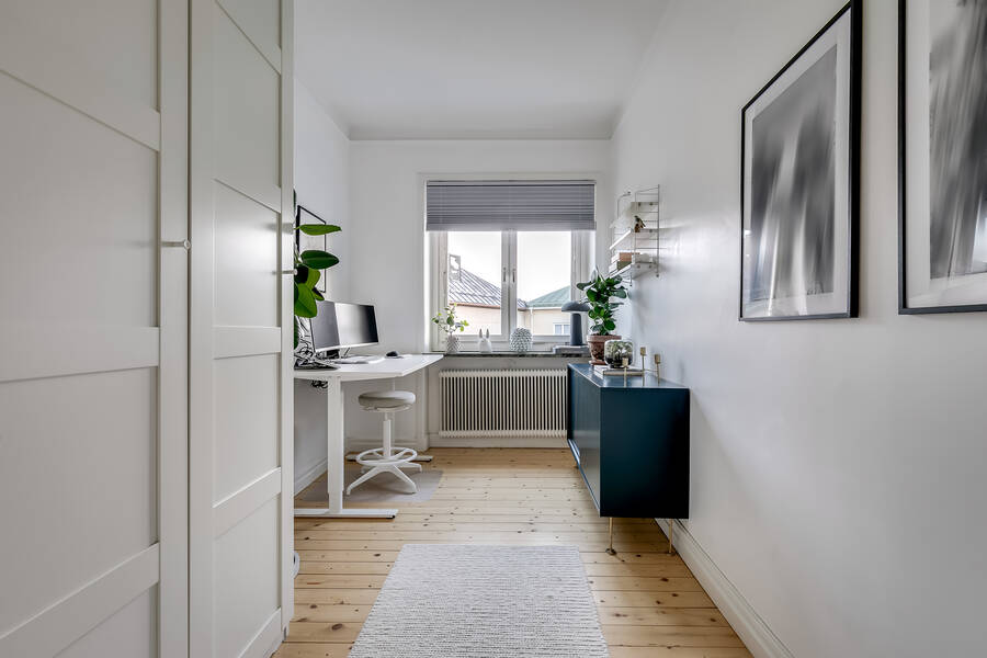 Läget högst upp i huset garanterar både ett härligt ljusinsläpp och en ostörd tillvaro. Lägg till detta flera stora fönster som ramar in utsikten och förstärker känslan av ljus och rymd. Denna bostad är en perfekt kombination av funktionalitet, modern design och klassiska detaljer – redo för nästa ägare att njuta av.