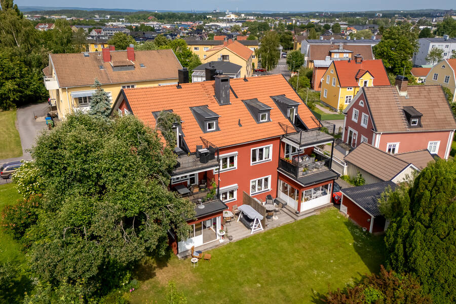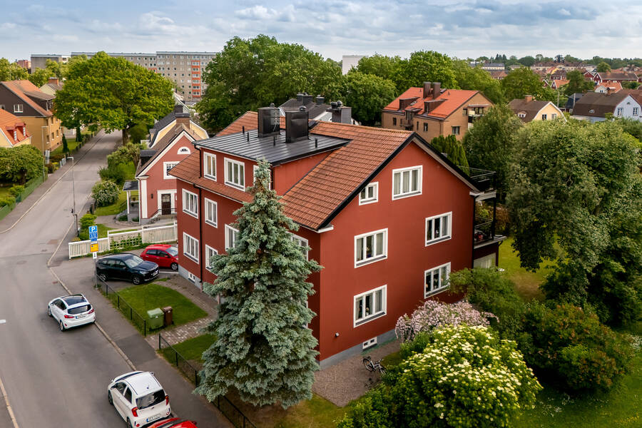Föreningen består av endast sex lägenheter och är mycket välskött, med låga avgifter och god ekonomi. Till boendet hör även praktiska förvaringsutrymmen i källarplanet dit du enkelt tar dig via en trappa inifrån bostaden. Etagelösningen skapar en härlig rymd och flexibilitet i boendet, perfekt för både barnfamiljen och dig som vill ha gott om plats att trivas på. Detta är ett hem som kombinerar lägenhetslivets bekvämlighet med radhusets frihet.