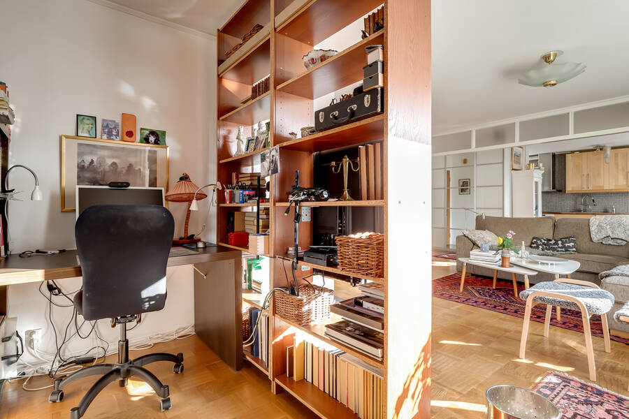 För den som önskar går det att dela av vardagsrummet och på så sätt få tillgång till ytterligare ett sovrum.