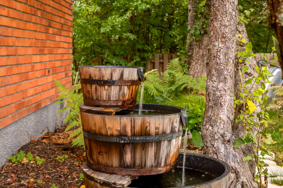 Den plana gräsmattan är lättskött och ramas in av välplanerade planteringar som tillför färg och karaktär. Här får du en perfekt balans mellan prydnad och praktisk yta. För den som vill ta en promenad bland träd och fågelkvitter finns en grind som leder vidare till den angränsande skogsdungen – en charmig och barnsäker genväg ut i naturen.