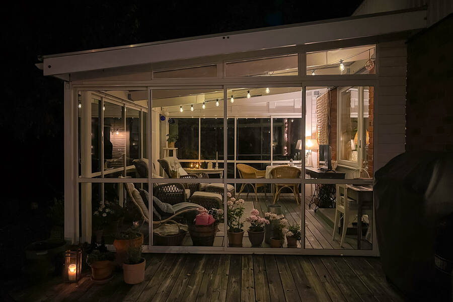 Och så vår älskade inglasade altan, ett rum som blivit hjärtat i vårt hem. Där har vi tillbringat otaliga kvällar, ibland med en kopp te och en god bok, ibland med familj och vänner, ibland med TV:n på, ibland insvepta i filtar medan regnet smattrat mot glaset. Det har varit en plats för både vila och gemenskap, och vi kommer att bära med oss många fina minnen därifrån.