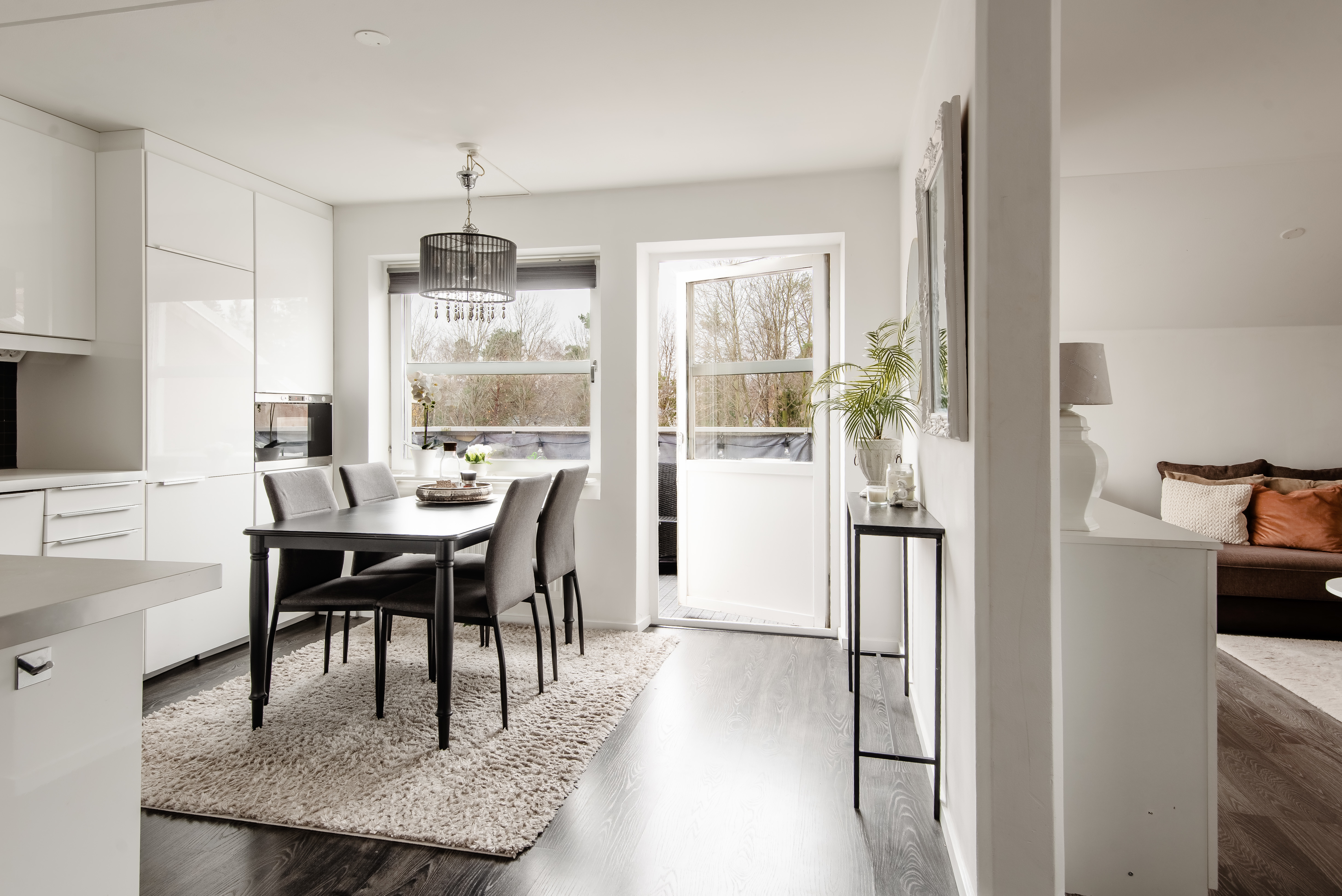 Bostadens hjärta, köket, ligger centralt i bostaden i anslutning till både balkong och vardagsrummet. Köket renoverat med stilrena högblanka luckor och lådfronter, nya stommar, bänkskiva, socklar, vitvaror och kakel. Vitrinskåp med infälld led-belysning. Mörkgrått kakel ovanför bänkskivan som bryter av det i övrigt ljusa köket. Fullt utrustad maskinpark: Varmluftsugn, glaskeramikhäll, spisfläkt, integrerad diskmaskin samt kyl/fys och inbyggd micro.